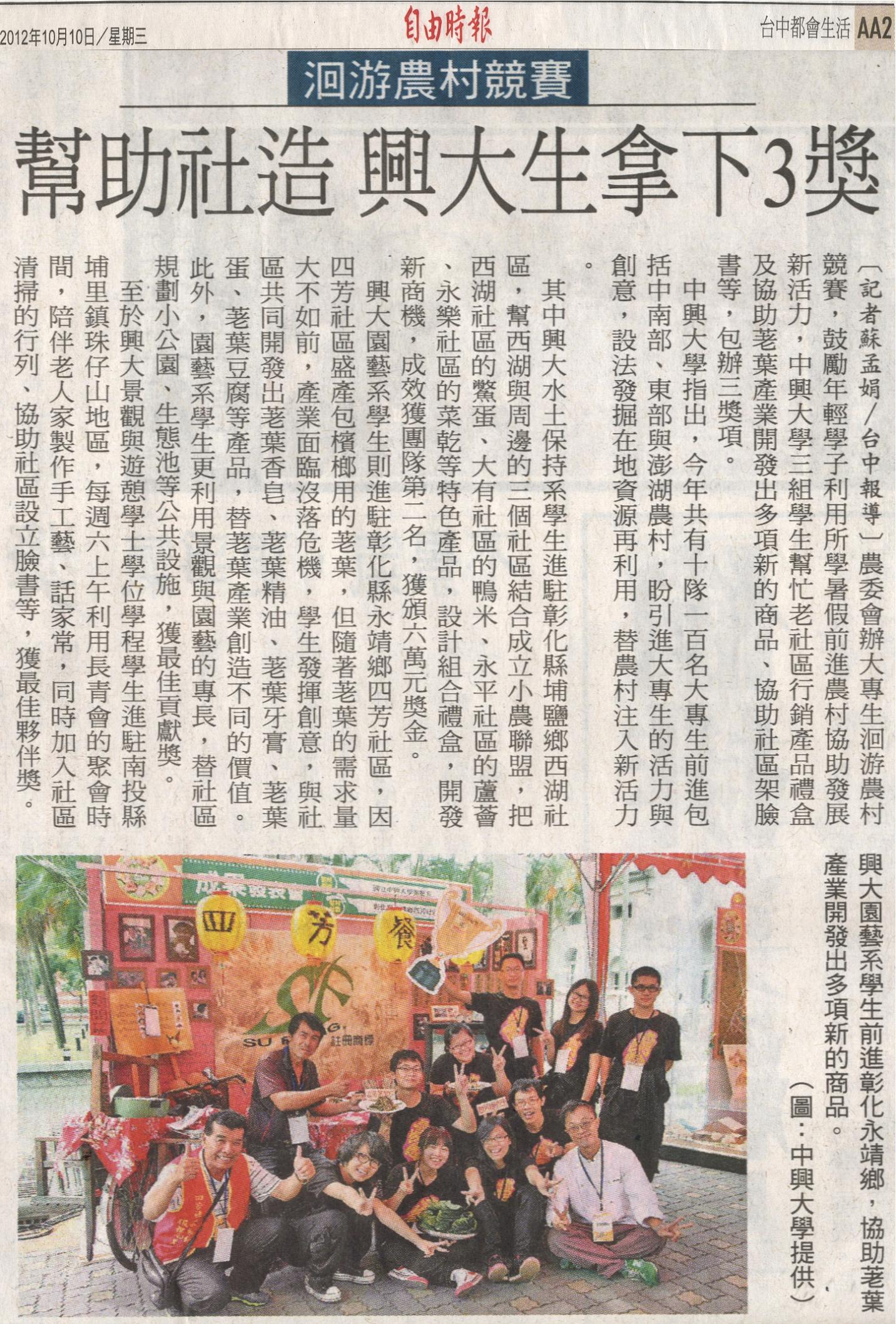 【媒體報導】洄游農村競賽 幫助社造 興大生拿下3獎
