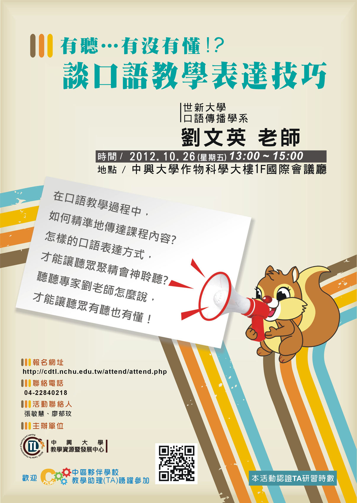 報名網站:http://cdtl.nchu.edu.tw/attend/attend.php