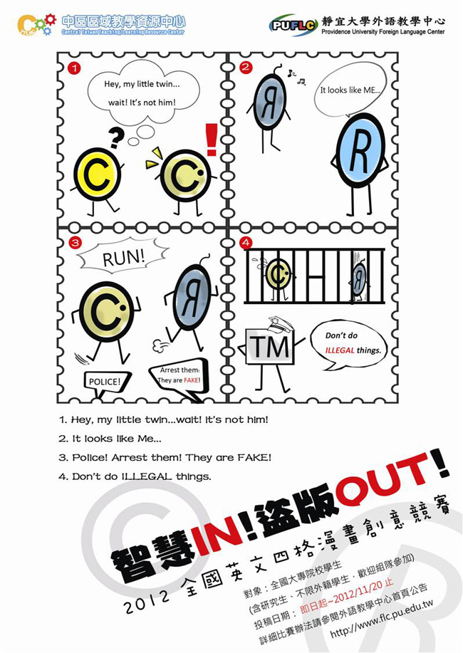 智慧IN!盜板OUT!-2012全國英文四格漫畫創意競賽