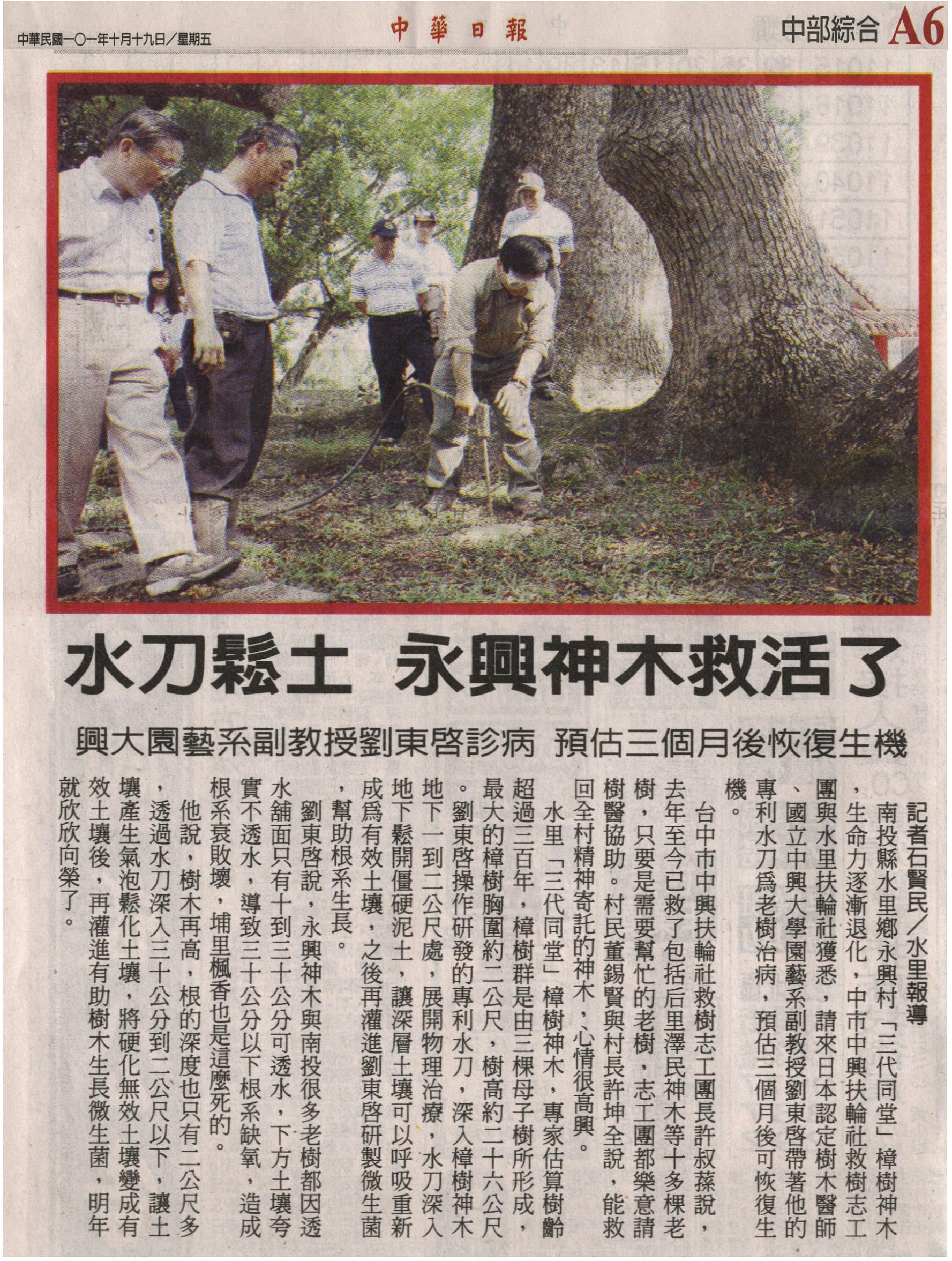 【媒體報導】水刀鬆土 永興神木救活了