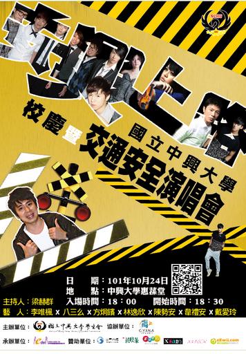 演唱會主辦人、興大學生會會長張智瑋表示,有別於以往的迎新演唱會,今年特別與台中市警局第三分局合作宣導交通安全,會場將發送3千份文宣,清楚標示出南區各大危險路口,希望提醒大學生注意「行的安全」。