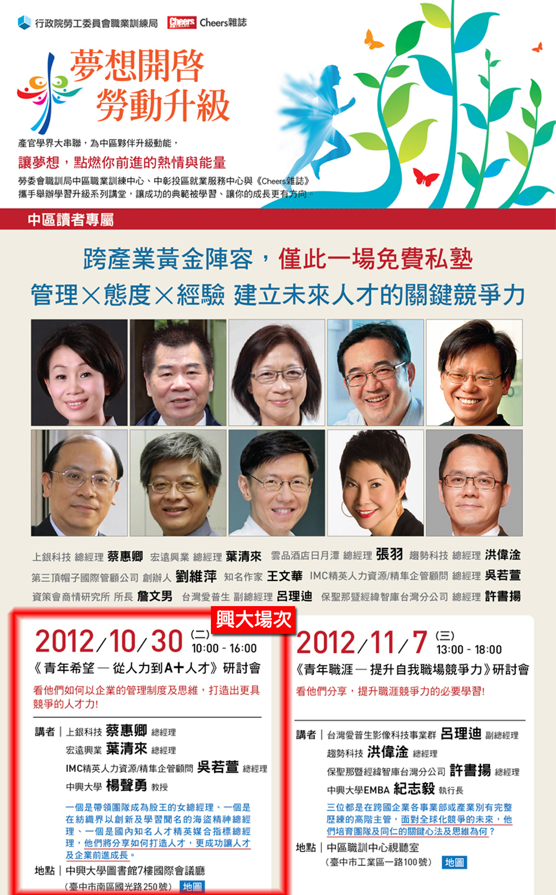 勞委會職訓局中區職業訓練中心、中彰投區就業服務中心與《Cheers雜誌》