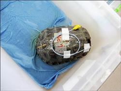 虛弱無法進食的食蛇龜,通常需長達半年打針補充營養的療程。(記者蔡宗憲翻攝) |