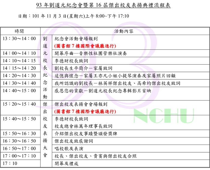 劉道元校長為中興大學第三任校長(1967-1972),任內積極擴建校舍、充實設備,增加校地19公頃,為中興大學拓展校地的功臣。今年林英祥校友(明尼蘇達大學統計博士、興大應經系講座教授、美國林氏諮詢公司總裁)因感念劉校長在學期間的指導與鼓勵,捐助經費成立劉道元校長紀念室,並舉辦紀念活動、出版紀念專輯及拍攝紀錄影片。紀念會當天將由林英祥校友及天下文化出版公司創辦人高希均代表緬懷恩師。