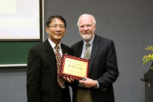 國際級大師中興大學開講!國立中興大學今年度聘任美國加州大學戴維斯分校名譽校長 Larry N. Vanderhoef 為興大講座教授,11月6日至15日兩週期間,Vanderhoef 以「給未來總統的生物課」為題,發表四場英語演講,演講廳內一百多個座位,座無虛席,師生提問踴躍。