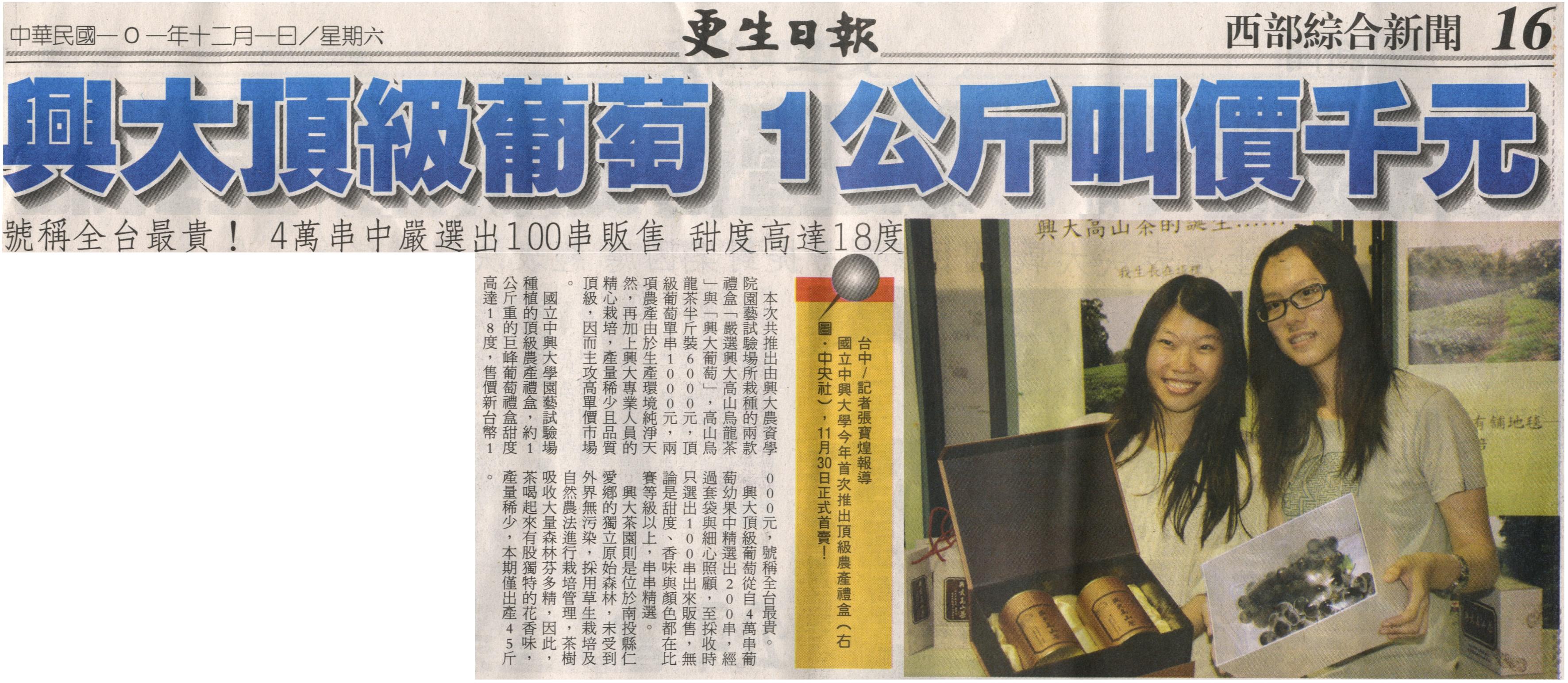 【媒體報導】興大頂級葡萄 1公斤叫價千元