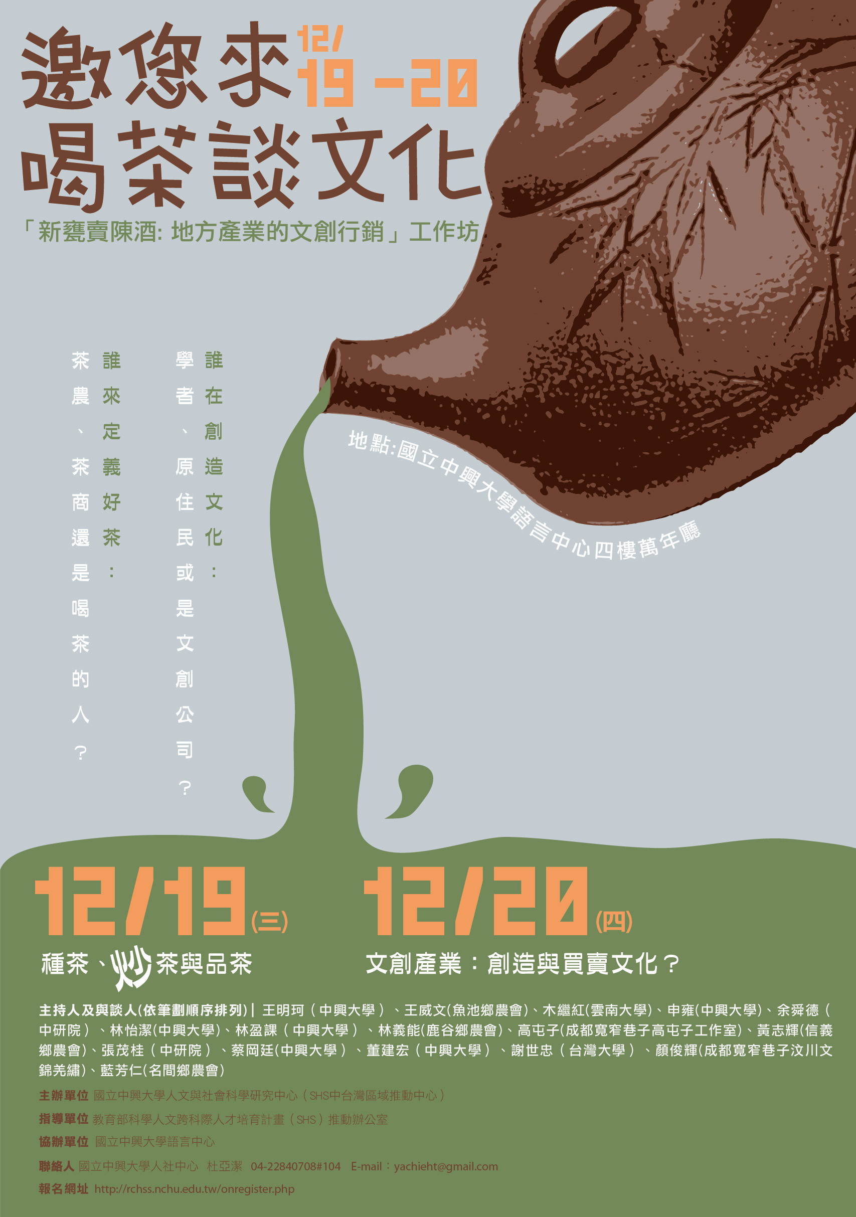 線上報名: http://rchss.nchu.edu.tw/onregister.php