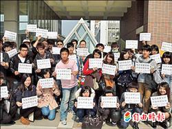 弘光科大昨舉辦「反對媒體壟斷」快閃活動,參與學生高舉字牌,捍衛新聞自由。 |