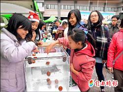耶誕腳步近,中興大學推出另類「聖蛋節」,除展出包括鴕鳥、烏龜等蛋外,另以簡易方式介紹蛋知識,教民眾辨識蛋的新鮮度及鹹蛋DIY等,昨日現場還準備千顆茶葉蛋大放送,吸引參觀人氣。
