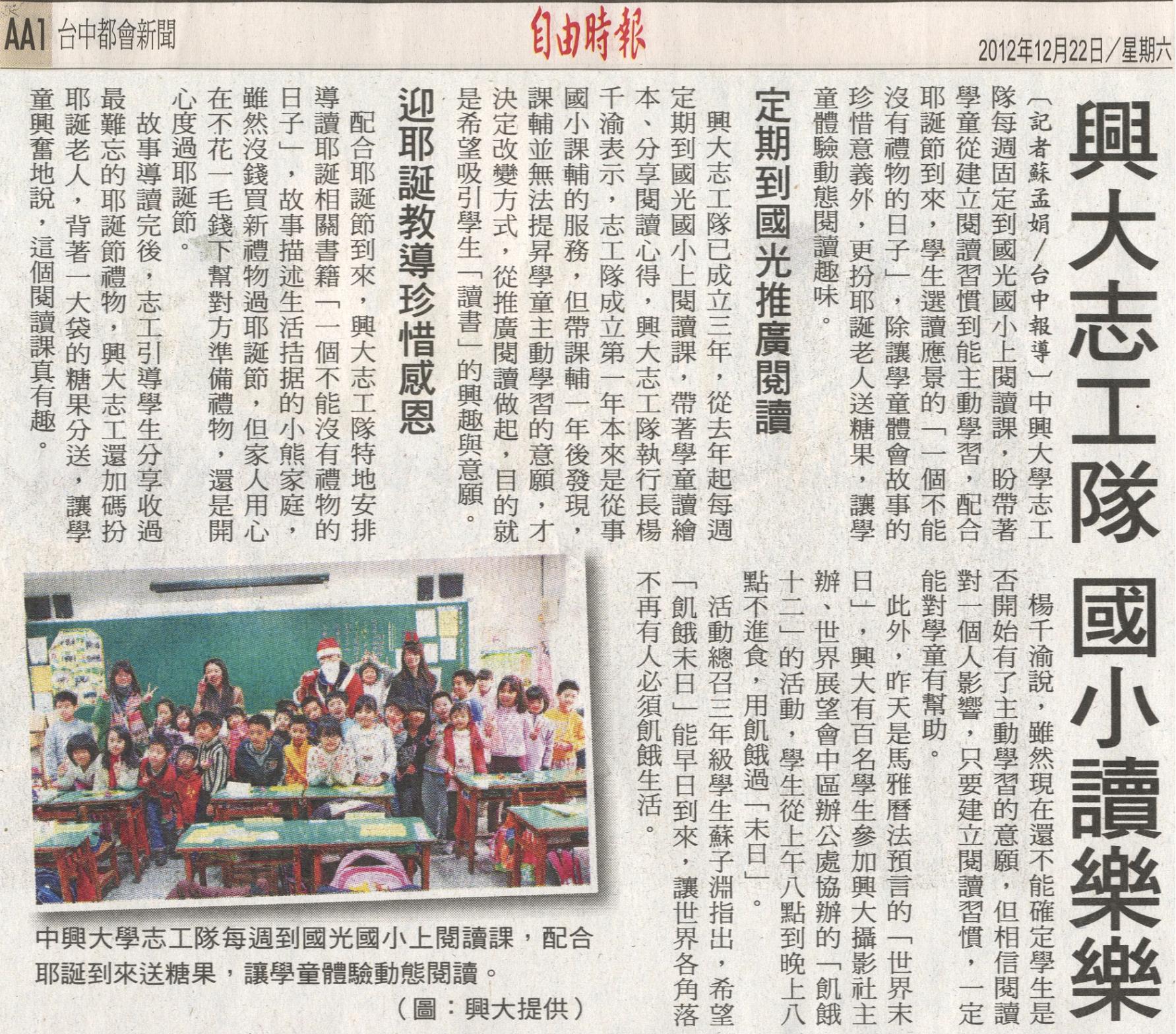 稿源:2012-12-22/自由時報/蘇孟娟/台中報導