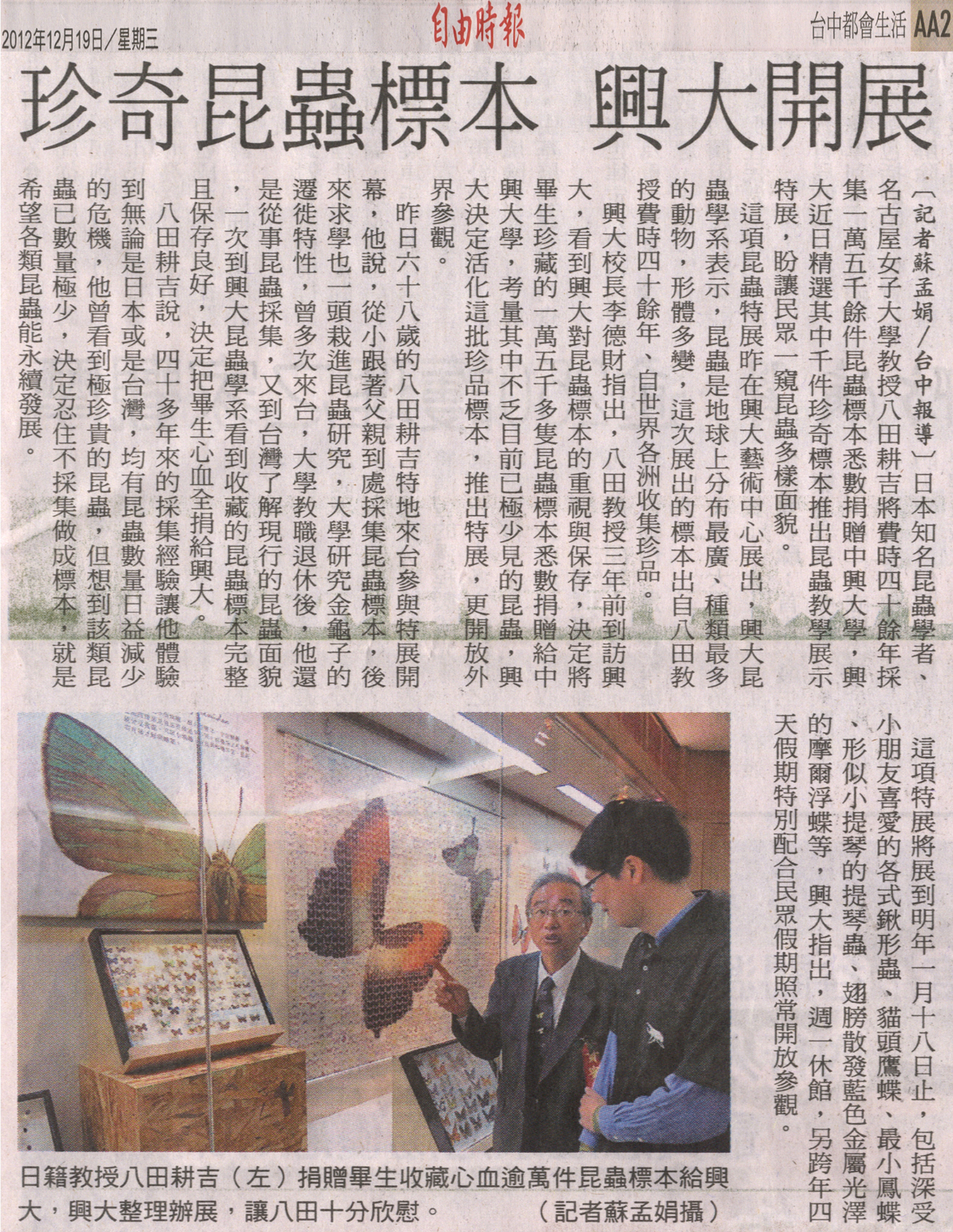 【媒體報導】珍奇昆蟲標本 興大開展