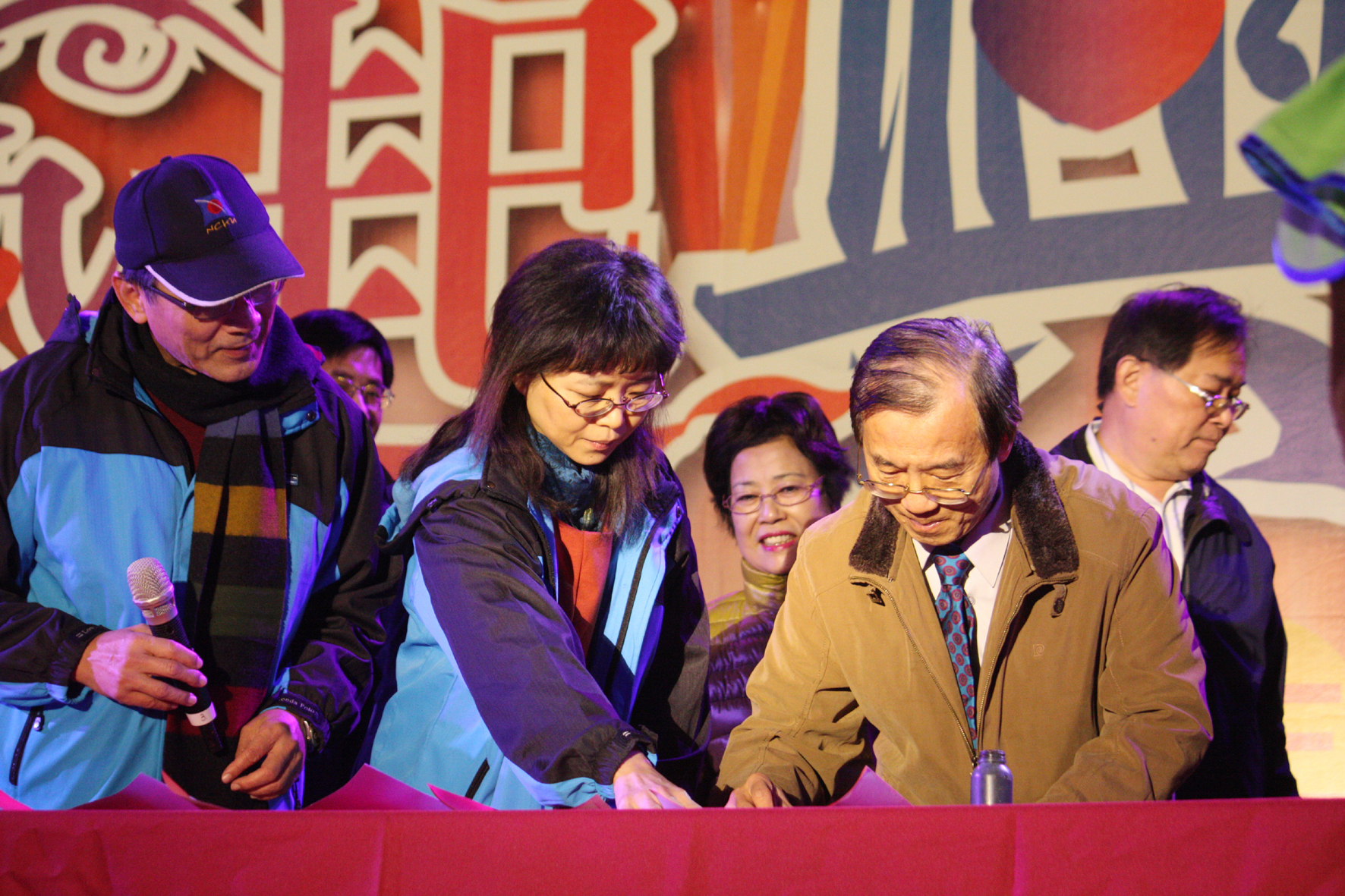 ![]() 興大李德財校公佈102年校園漢字:曙 ![]() 楊秋忠教授(前排右1)用滴管現場揮毫,寫下「曙光耀昇,藝起興傳」。 ![]() |