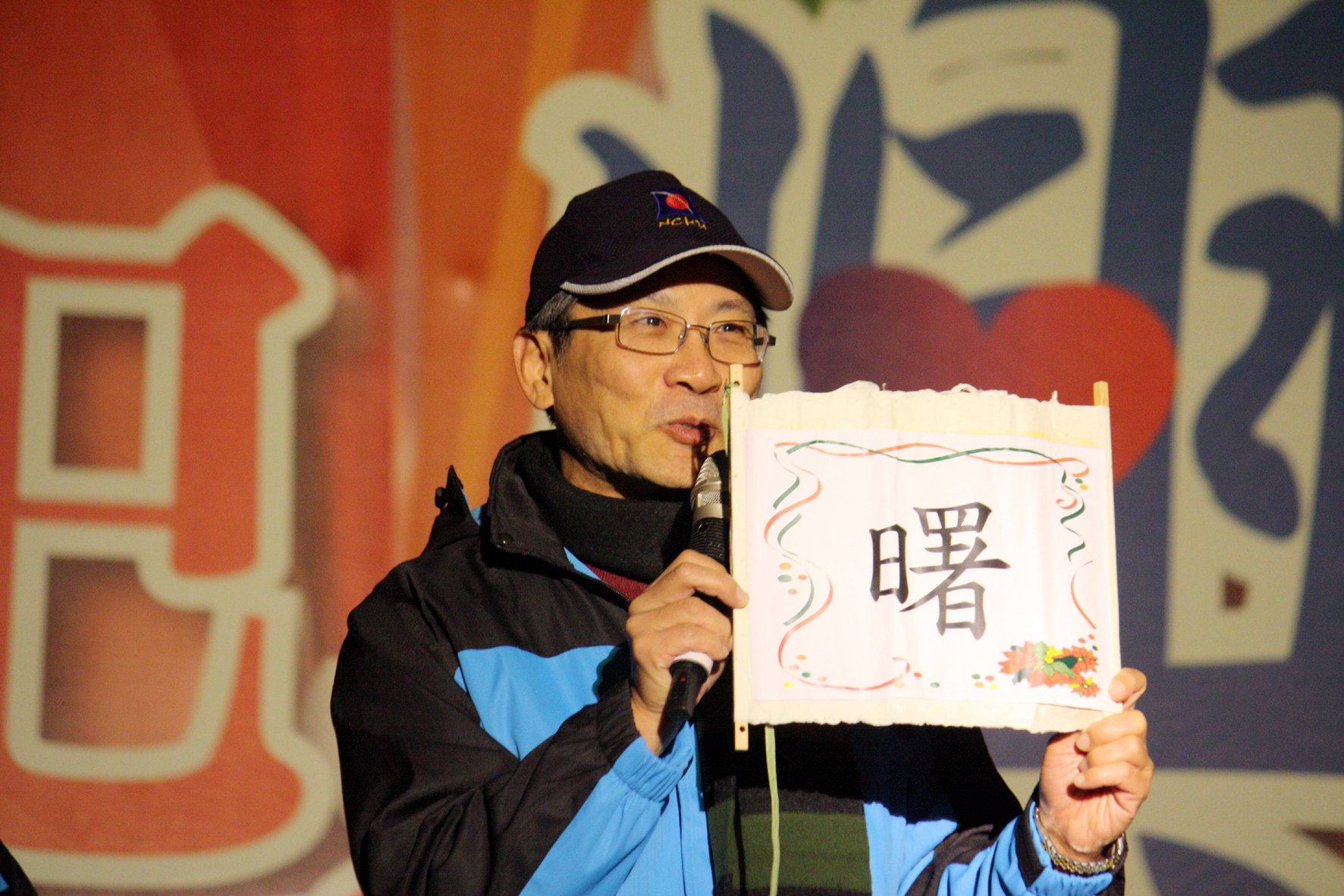 12月31日晚間6點30分興大跨年晚會上,由興大李德財校長主持年度漢字揭榜,邀請中興大學土壤環境科學系楊秋忠講座教授現場揮毫,楊秋忠教授以獨樹一格的滴管作畫法,寫出「曙光耀昇,藝起興傳」八個字,祝福興大師生。李校長表示,「曙」具有曙光乍現、破曉出曙的正面意涵,期待來年興大在各個領域皆能有所精進與突破。