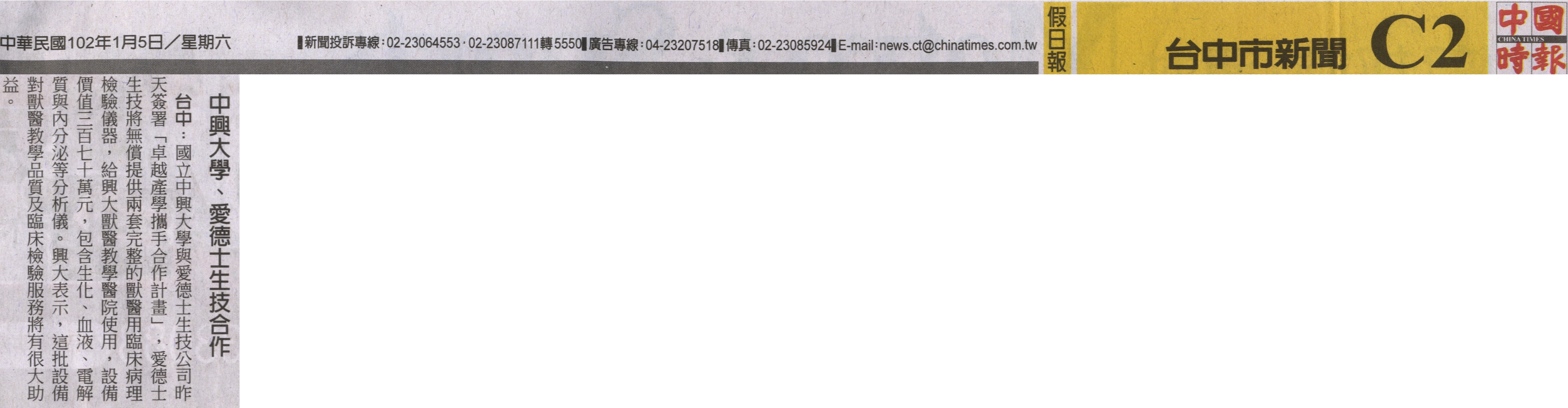 台中:國立中興大學與愛德士生技公司昨天簽署「卓越產學攜手合作計畫」,愛德士生技將無償提供兩套完整的獸醫用臨床病理檢驗儀器,給興大獸醫教學醫院使用,設備價值三百七十萬元,包含生化、血液、電解質與內分泌等分析儀。興大表示,這批設備對獸醫教學品質及臨床檢驗服務將有很大助益。
