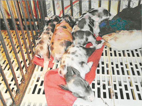 國科會研究團隊花費3年時間,利用「手工卵子分切複製技術」,成功複製全球首例2胎迷你豬。 |