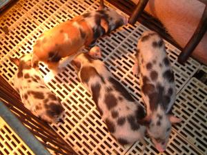 「手工卵子分切複製技術」複製出兩胎花斑迷你豬,其中一隻已成功繁衍後代。(朱志成提供)