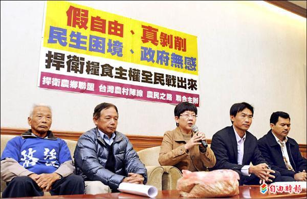 八三○項中國農產品將開放進口,昨天農團、學界及消費者團體在立法院召開記者會齊聲宣布,二月三日千人上凱道抗議。(記者王藝菘攝) |
