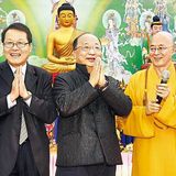 胡志強(中)昨銷假現身主持祈福會。李明憲攝 |