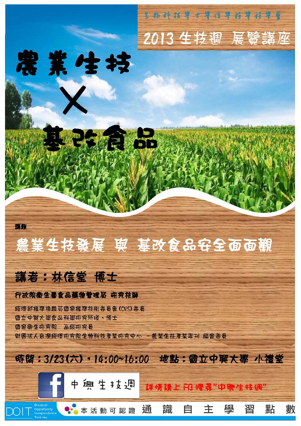 生技週演講:3/23(六)農業生技發展與基改食品安全 面面觀