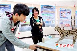 中興大學生態保育社學生以行動推廣保育觀,利用年度保育週大事,規劃「瀕危物種」主題,推出生態教育展,更借展目前備受環境改變影響生態的石虎標本,盼讓民眾「有感」,能參與保育行動。