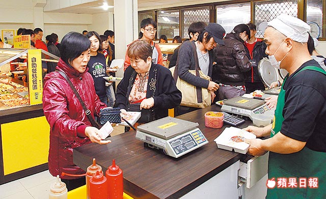 東海大學男生宿舍餐廳業者張毓傑表示,餐廳每天供應中餐及晚餐,共有四十多種菜色,不乏昂貴菇類或魚類等食材,一律以每百公克十四元計價,是一般自助餐廳一半。