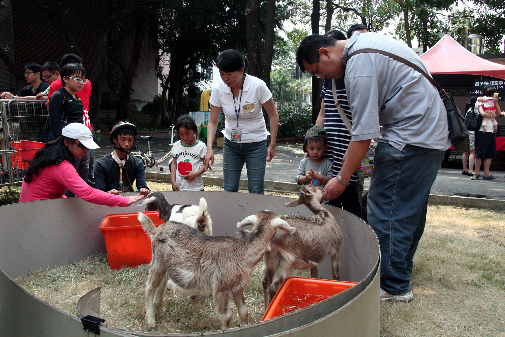 興大動科系友嘉年華,大家有吃有玩又有得逛!國立中興大學動物科學系3月23日上午九點至下午三點舉辦系友回娘家活動,二百多位校友及眷屬一同回母校,動科系所飼養的牛、羊、雞與兔子也一起登場會客,現場並擺設三十多個由系友贊助的園遊攤位,大人小孩都玩得不亦樂乎。