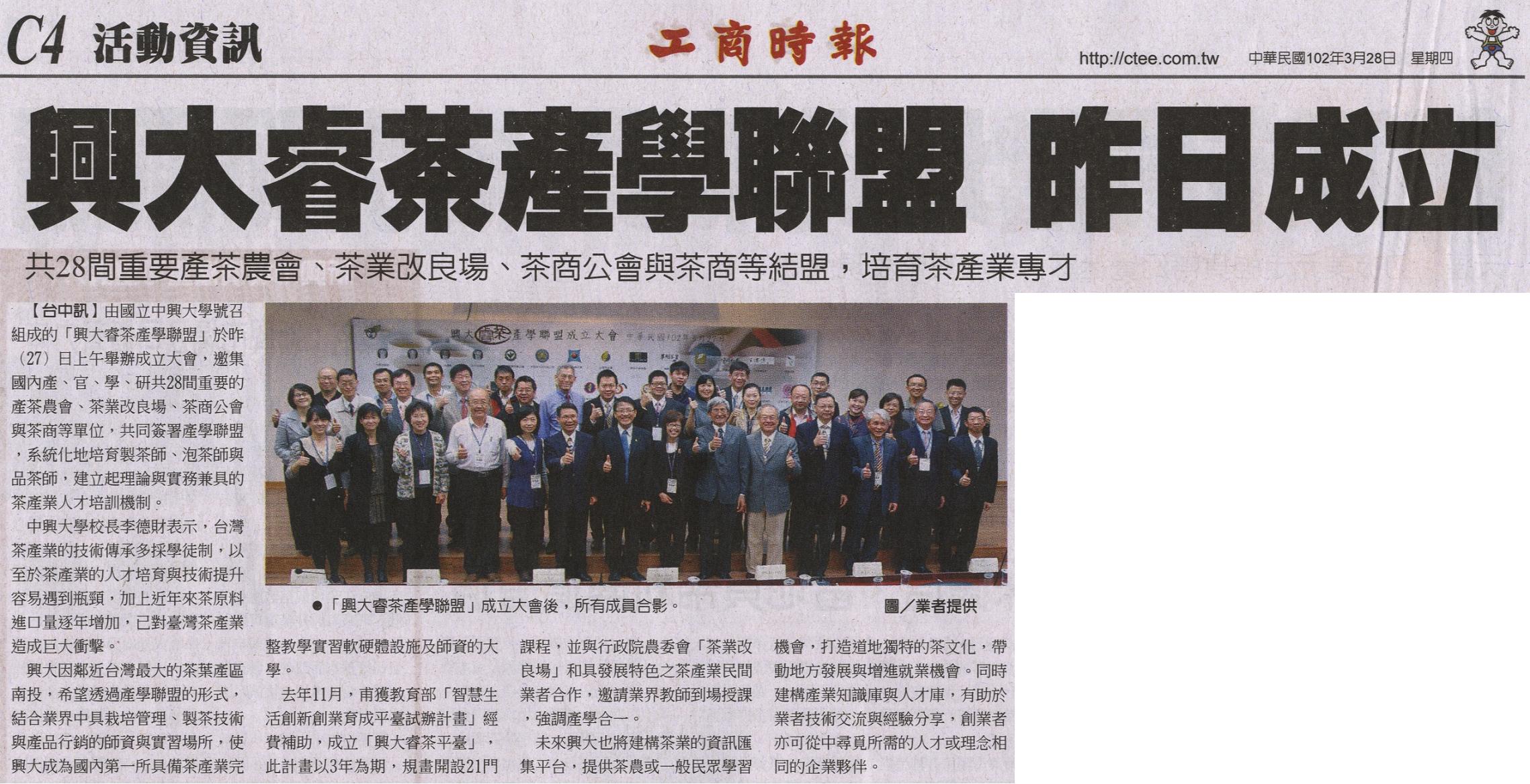 由國立中興大學號召組成的「興大睿茶產學聯盟」於昨(27)日上午舉辦成立大會,邀集國內產、官、學、研共28間重要的產茶農會、茶業改良場、茶商公會與茶商等單位,共同簽署產學聯盟,系統化地培育製茶師、泡茶師與品茶師,建立起理論與實務兼具的茶產業人才培訓機制。