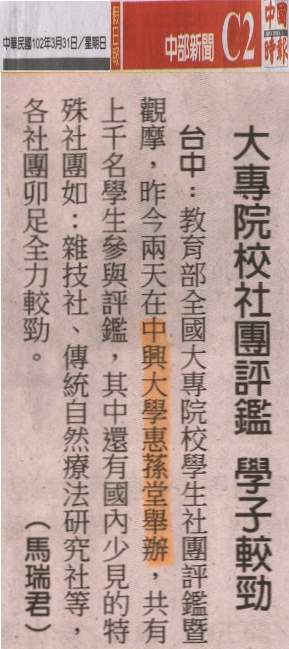 【媒體報導】《地方掃描》大專院校社團評鑑 學子較勁