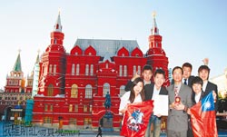 身歷其境 興大教授楊明德(中)率領6個博碩士班開發出「全景實景虛擬環球旅遊系統」(圖後螢幕),已於5日在莫斯科獲得第16屆俄羅斯阿基米德國際發明展金牌獎。該套系統也可利用Google街景地圖,合成出在當地出遊的旅遊照。(興大提供)