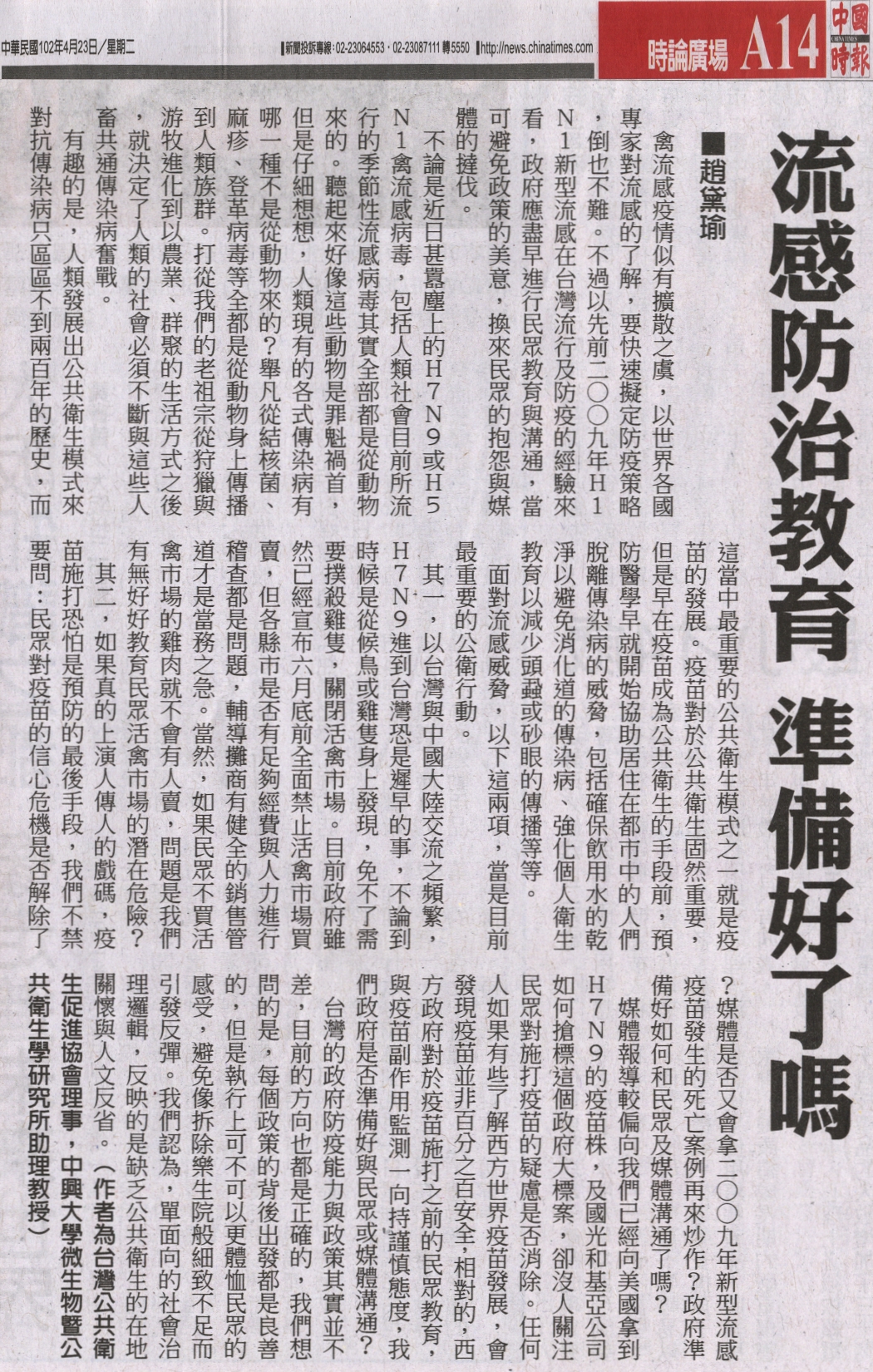 稿源:2013-04-23/中國時報/A14/時論廣場