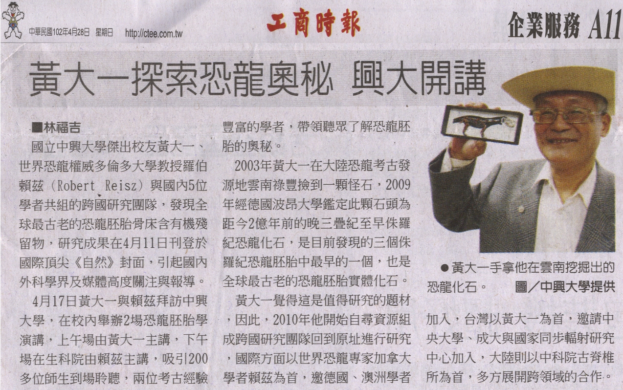 【媒體報導】黃大一探索恐龍奧秘 興大開講