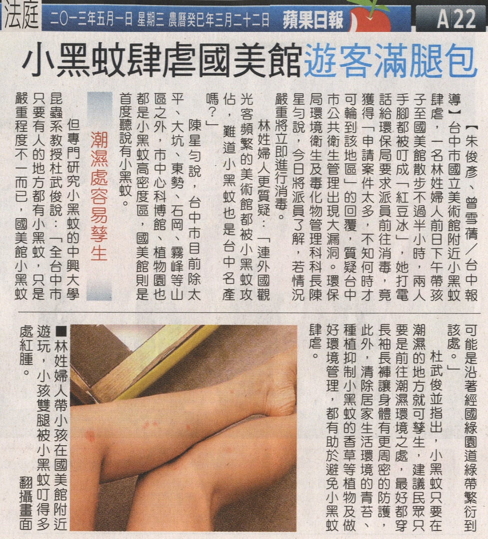 【媒體報導】小黑蚊肆虐國美館 遊客滿腿包