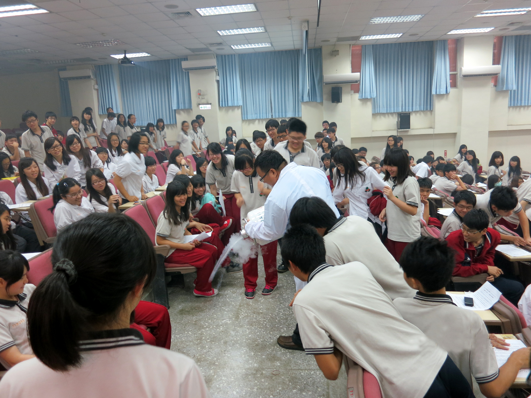 「親自體驗」有助於理解與記憶,林兆果老師說,至今他都還記得第一次看到液態氮低溫實驗、氫氣球爆炸與化學振盪反應時,心中所湧現的驚喜與震撼,原來化學可以那麼有趣。課本中的化學式對學生來說,是個抽象不具體的概念,他以自己為例,國中唸書時都讀過乾冰是固態的二氧化碳,但第一次看到乾冰的實體卻是在數年後,台北的冰淇淋店內,從小生長在宜蘭鄉下的他,根本沒機會知道乾冰長怎樣。所以,他希望透過一些輕鬆有趣的方式讓學生不再看到化學就皺眉,在沒有考試壓力的情況下,讓學生從神奇的表演中思考背後的原理。