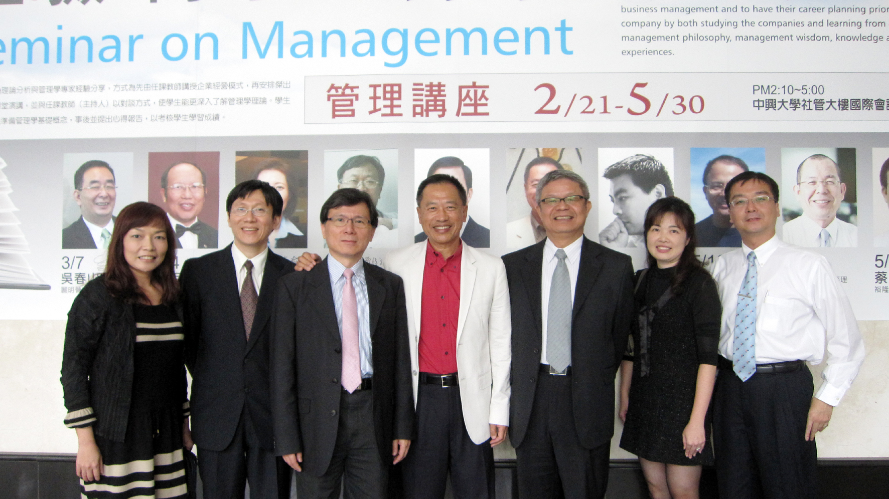 興大管理講座由管理學院開設,全校共有320位學生選修,每週三小時的課程,邀請國內成功企業家與專業經理人現身說法,時間為每週四下午2:10-5:00,歡迎各界踴躍旁聽。