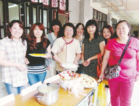 參賽的陸海虹,是來自廣東的外配,端出「小炒王」及「港式釀豆腐」;在地日本料理師傅陳國清也端出「花枝壽司」及「生菜沙拉」。全場琳琅滿目百件的美食,有些看似平淡,卻能蹦出新滋味。中午全校師生及參賽媽媽分享美食,實際品嘗一道道充滿異國風味的創意料理,讚聲不絕,也提前歡度一次不一樣的母親節。
