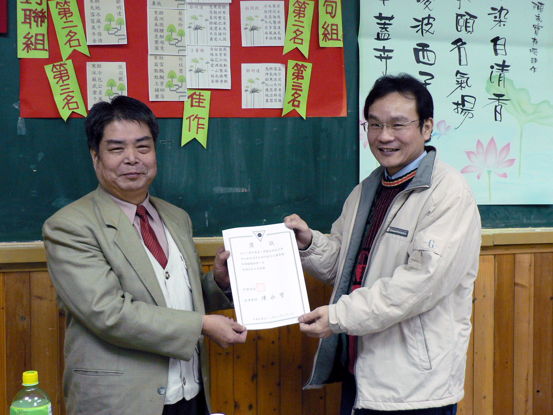 2009年蔡剛傑(右)參加校內創作競賽,詩作獲得第一名。