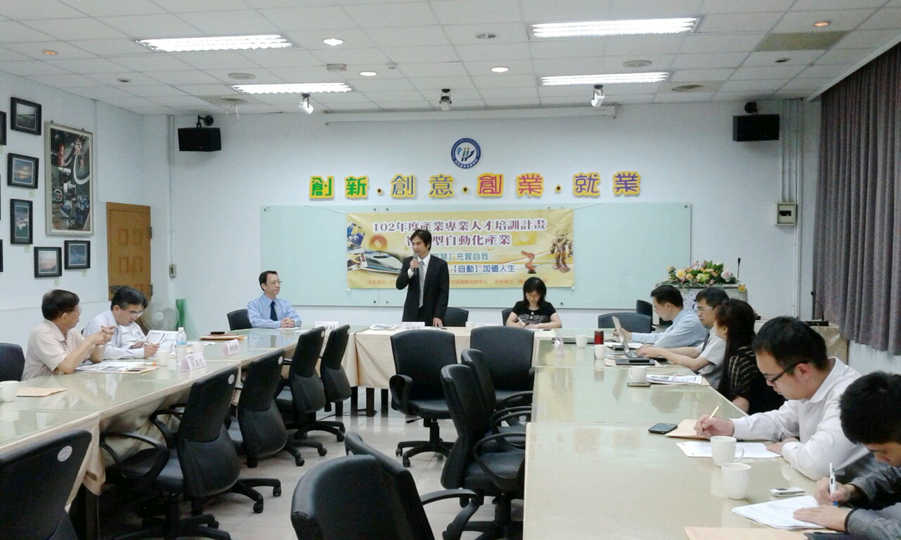 國立中興大學創新產業推廣學院5月9日上午9點在興大雲平樓1樓會議室舉辦「102年度產業專業人才培訓計畫-智慧型自動化產業期初座談會」。會中邀請產官學界代表參加,包含中興大學林俊良副校長、創產學院洪瑞華院長、機械系陳政雄教授、材料系林佳鋒教授、上銀科技、旭東精密機械、高僑自動化、財團法人精密機械研究發展中心、台灣工具機暨零組件工業同業公會等代表共同與會。
