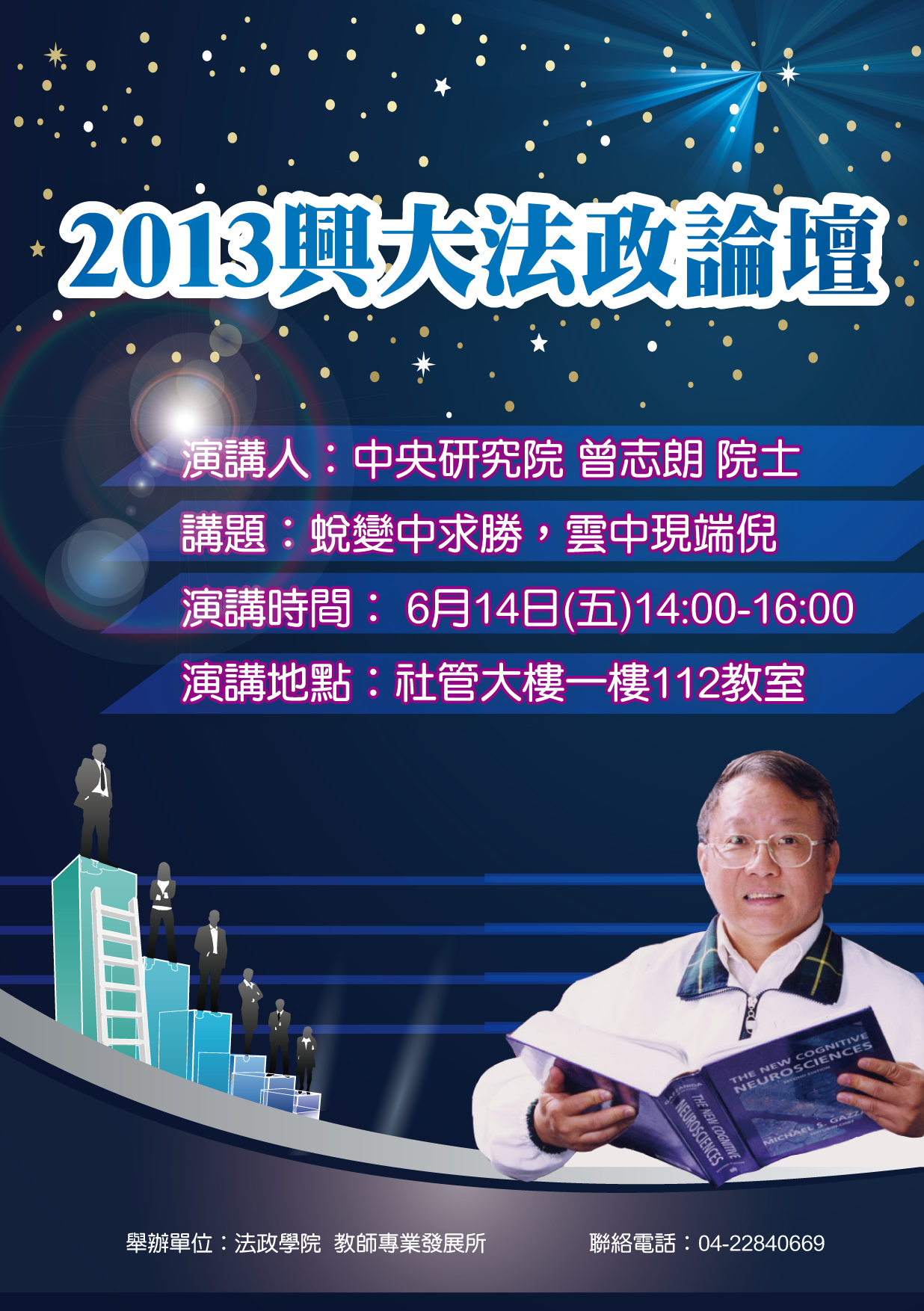 2013興大法政論壇(講題:蛻變中求勝,雲中現端倪。)