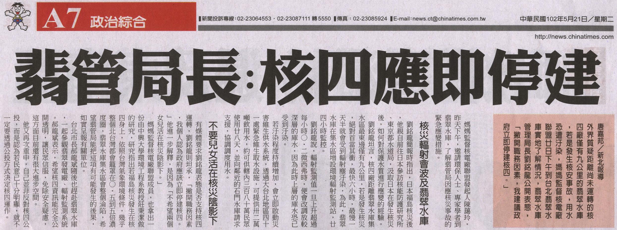 稿源:2013-05-21/中國時報/唐嘉邦/新北報導