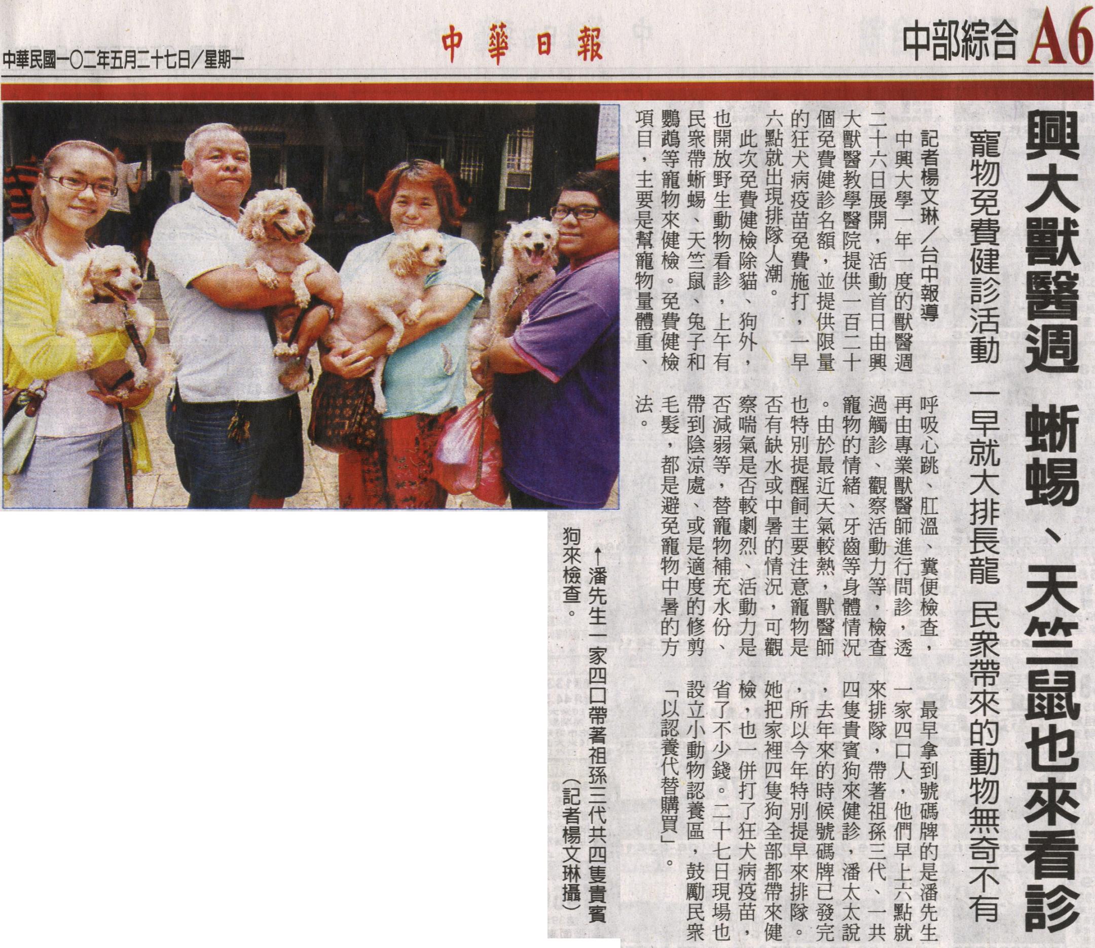 【媒體報導】興大獸醫週 蜥蜴、天竺鼠也來看診