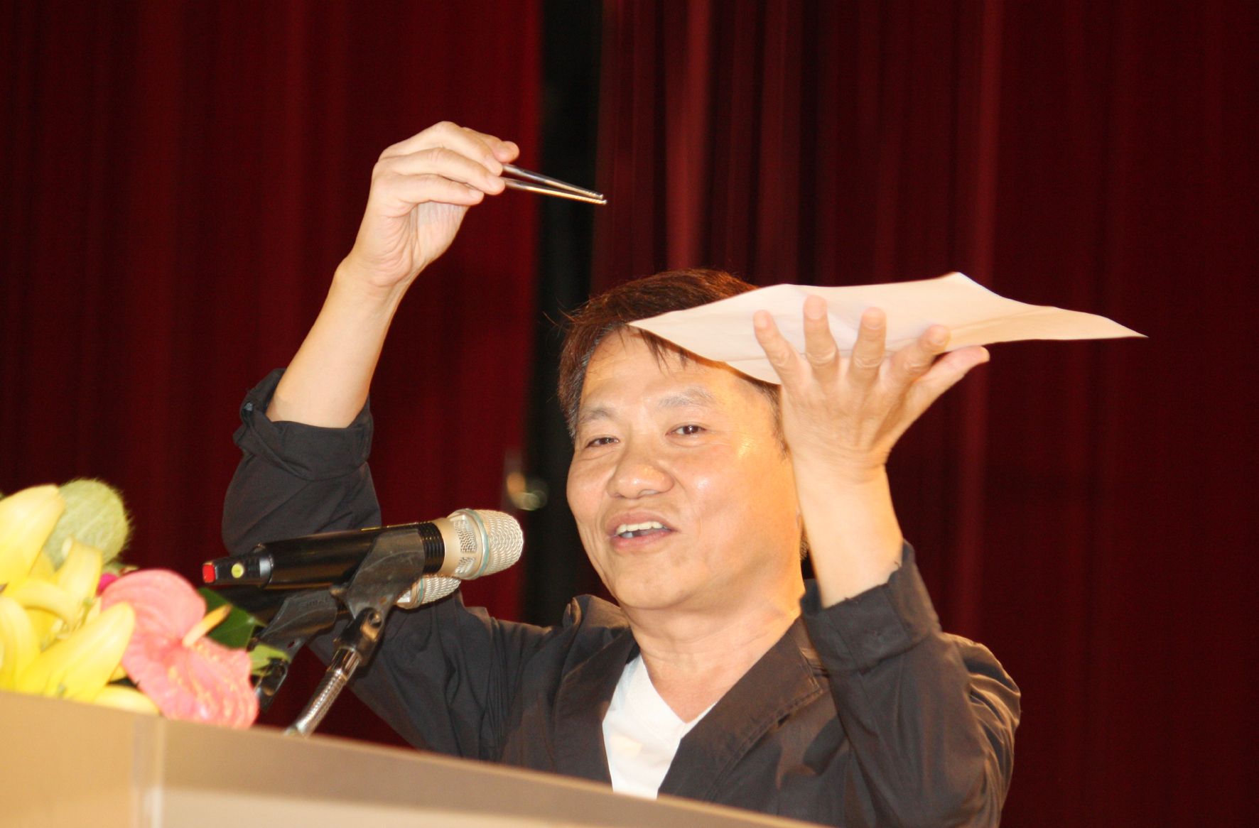接著,戴勝益拿出筷子,他將筷子比喻為生產工具,一支是自己、一支是工作夥伴,一雙筷子少了一支什麼事也做不了,不論學位、家世如何,要營造別人願意跟你配合的空間,「人緣第一,專業才能發揮」。