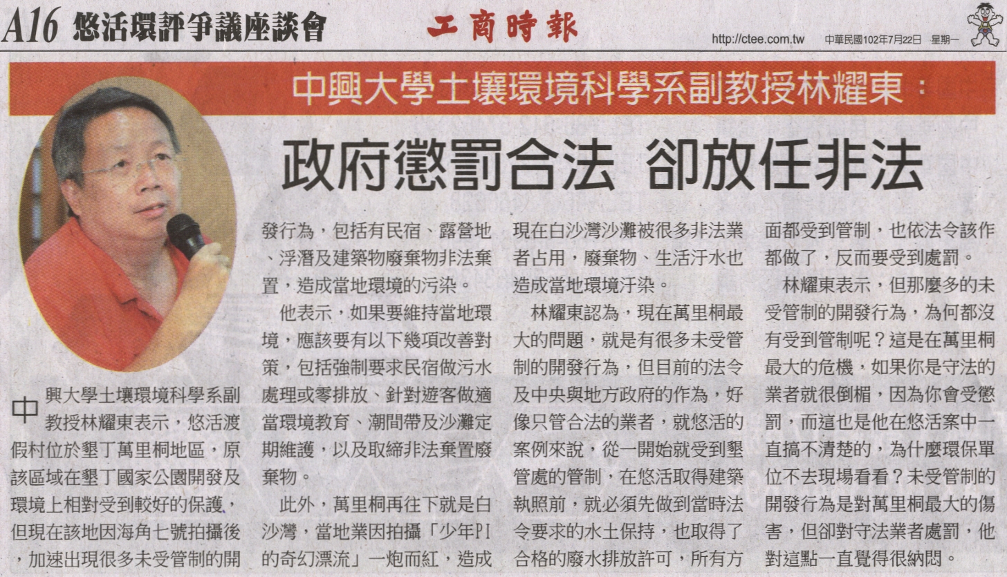 中興大學土壤環境科學系副教授林耀東:政府懲罰合法 卻放任非法