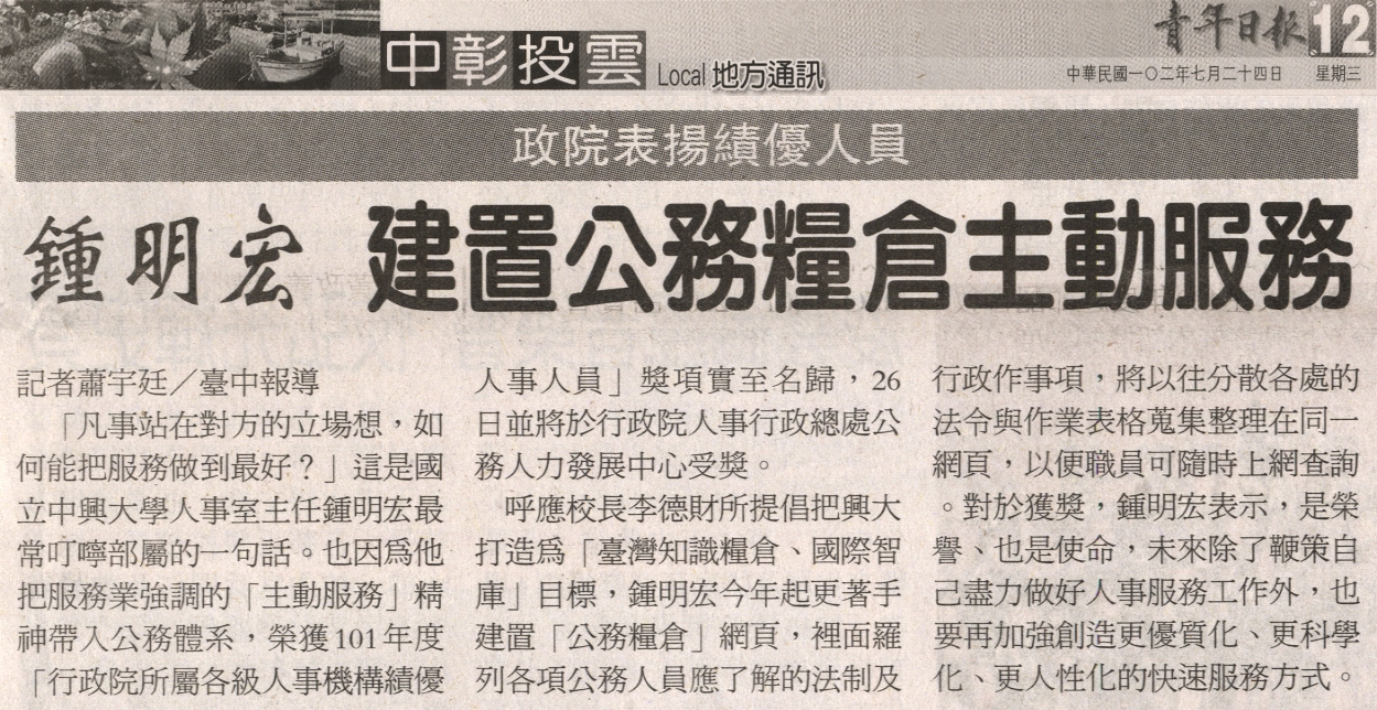 【媒體報導】鍾明宏 建置公務糧倉主動服務