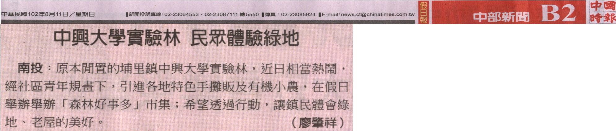 【媒體報導】《地方掃描》中興大學實驗林 民眾體驗綠地