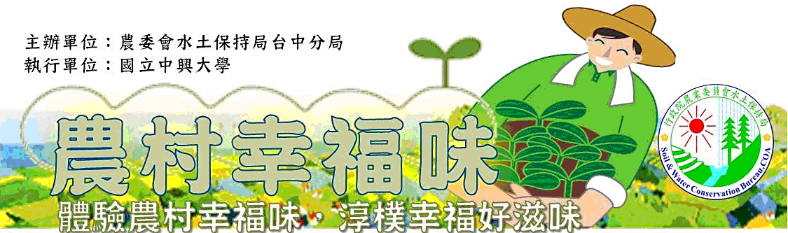 【圖文/興大園藝系】水土保持局臺中分局將於8月、9月、10月舉辦「102年中苗農村再生城鄉交流計劃」農村幸福味-導覽行程,旨在引導城市居民體驗農村再生成果,走到農村社區體驗農村幸福味,親自來感受中苗六味─農家味、風土味、海潮味、花香味、自然味、人情味,誠摯邀請民眾一同下鄉體驗幸福好滋味!
