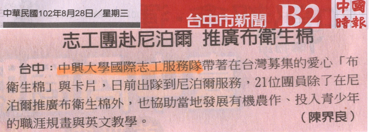 【媒體報導】志工團赴尼泊爾 推廣布衛生棉