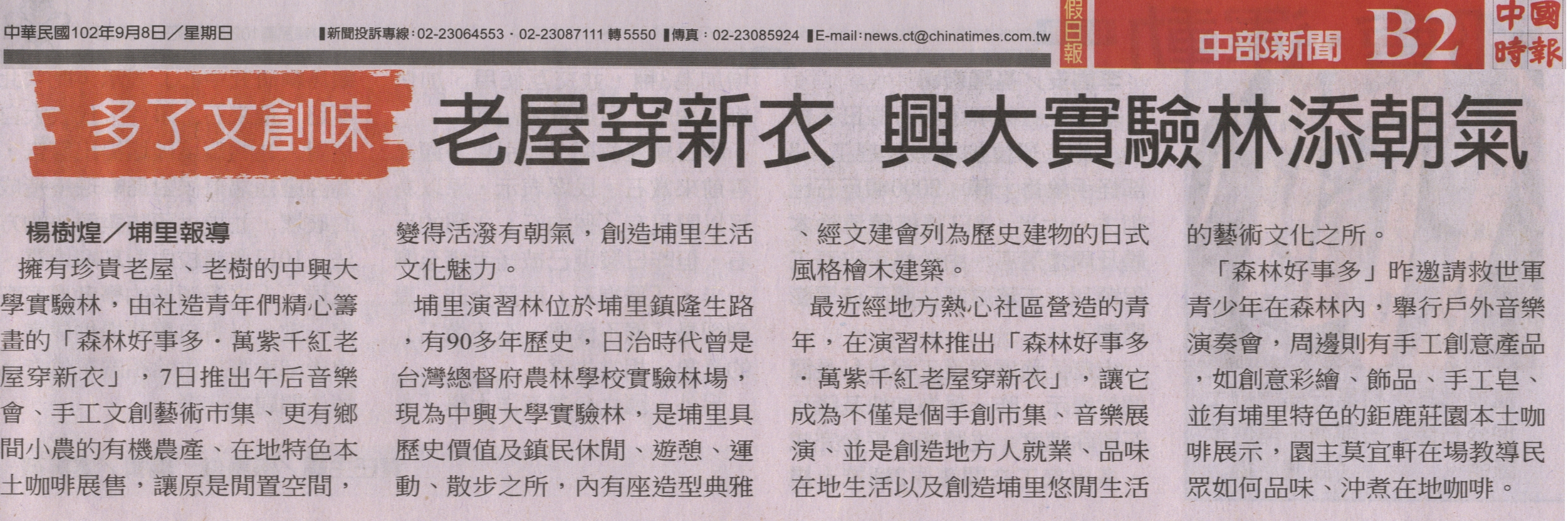 【媒體報導】多了文創味 老屋穿新衣 興大實驗林添朝氣