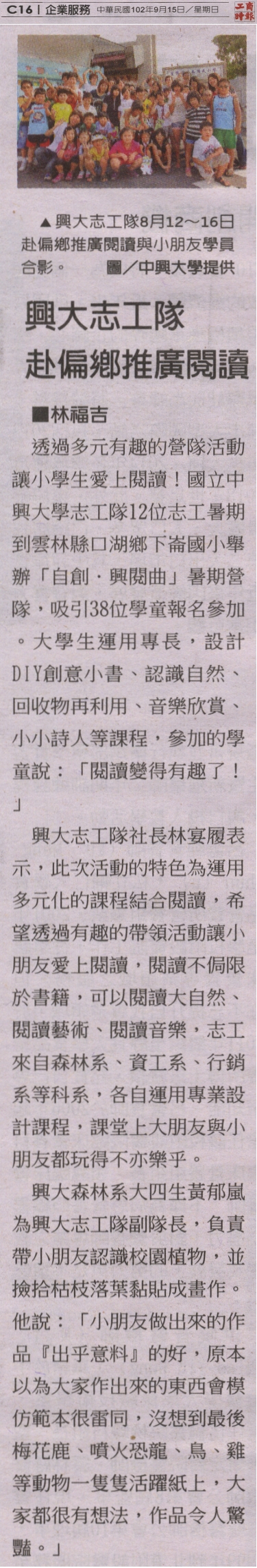 【媒體報導】興大志工隊 赴偏鄉推廣閱讀