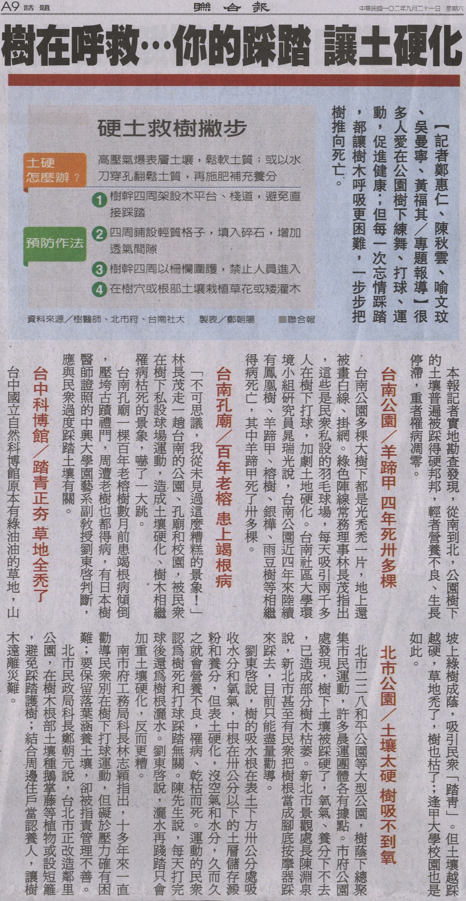 稿源:2013-09-21/聯合報/A12/鄭惠仁、陳秋雲、喻文玟、吳曼寧、黃福其