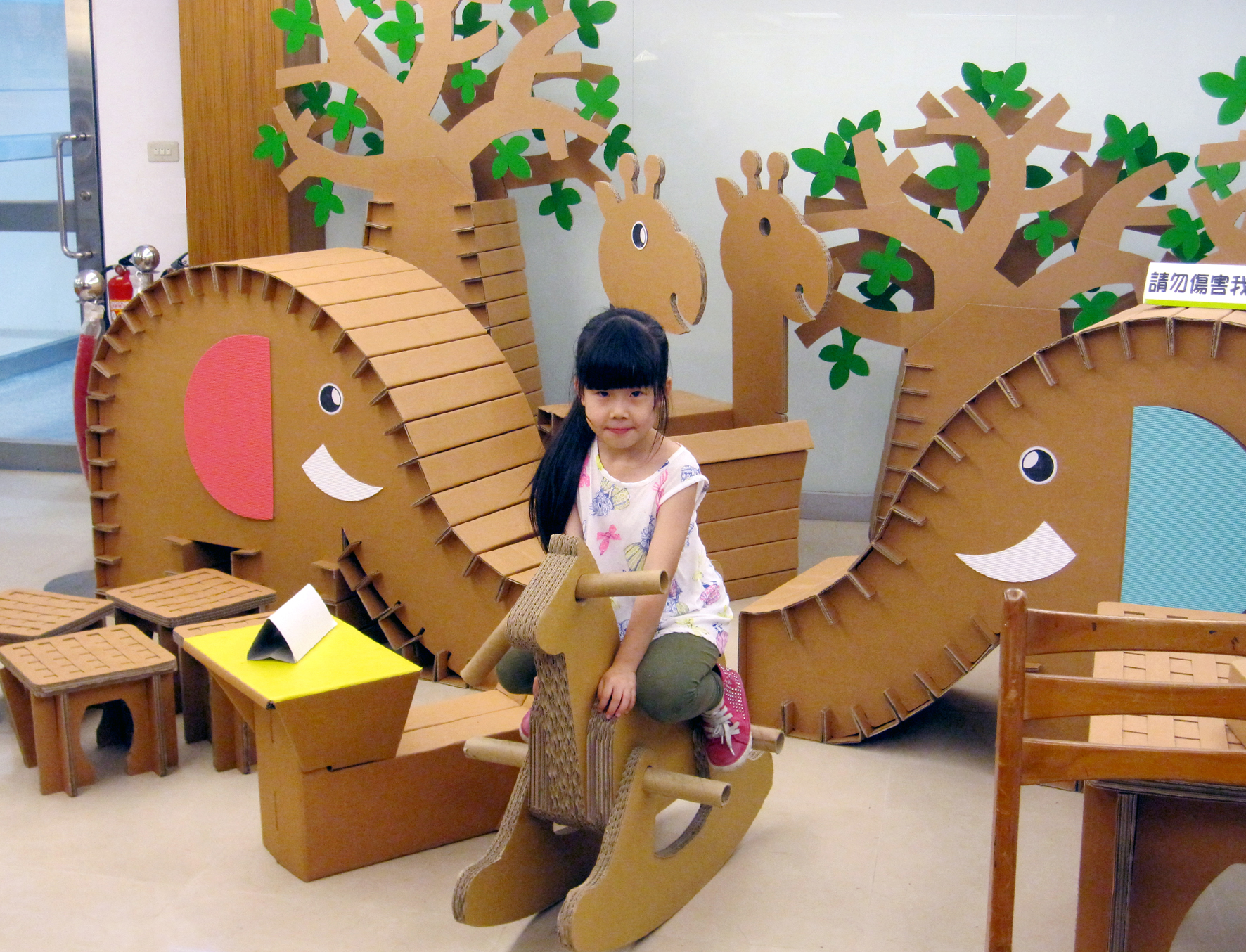 二次森林體驗館設有許多紙製與木製玩具,是小孩玩樂的好去處。 |